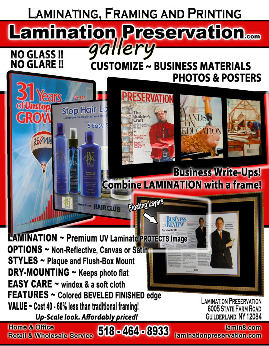 © Lamination Preservation Gallery established 1995 Capital District -Albany, Troy, Saratoga, Schenectady, Guilderland NY